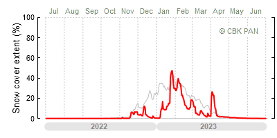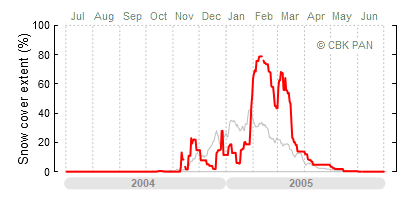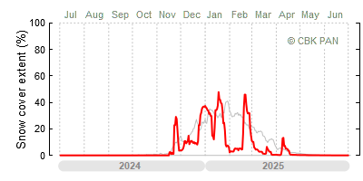 We would call a winter "harsh" if snow cover persisted for a long time and covered the largest possible area of the country. An example of such a situation in Poland is the winter of 2005/06, when snow covered almost the entire country from mid-December until the end of April. This significantly impacted the average for the entire year—statistically, on each day between July 1, 2005, and June 30, 2006, snow cover extended over as much as one-third of Poland!