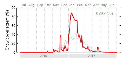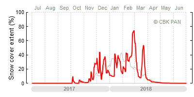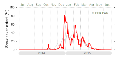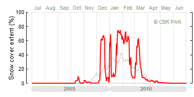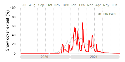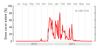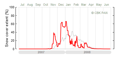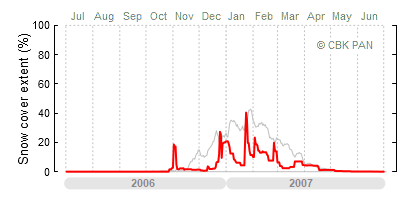 A mild winter is one where snow cover appears and quickly disappears, only occasionally covering more than 80-90 percent of the country. A good example of such a situation is the winter in Poland during the 2006/07 season, when snow appeared on a larger scale only at the turn of January and February.