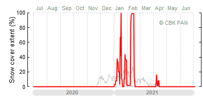A mild winter is one where snow cover appears and quickly disappears, only occasionally covering more than 80-90 percent of the country. A good example of such a situation is the winter in Poland during the 2006/07 season, when snow appeared on a larger scale only at the turn of January and February.