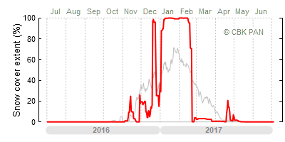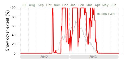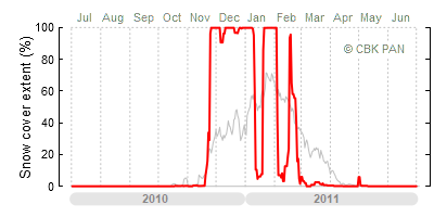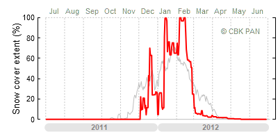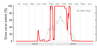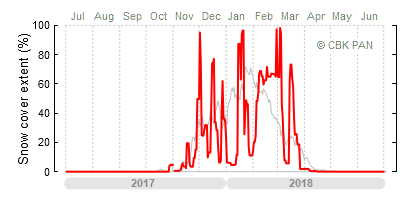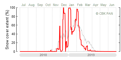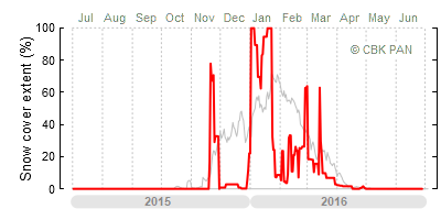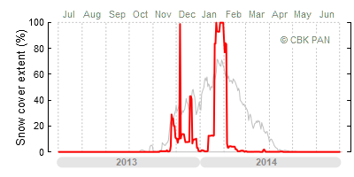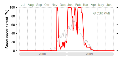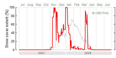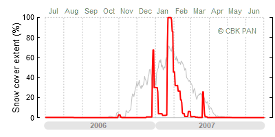 A mild winter is one where snow cover appears and quickly disappears, only occasionally covering more than 80-90 percent of the country. A good example of such a situation is the winter in Poland during the 2006/07 season, when snow appeared on a larger scale only at the turn of January and February.