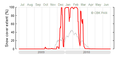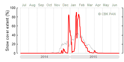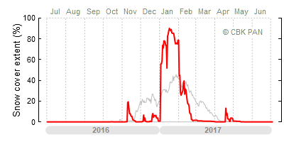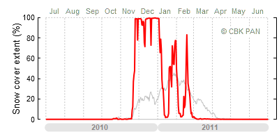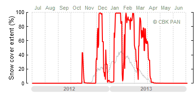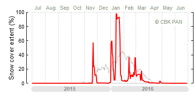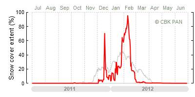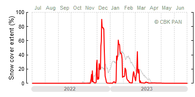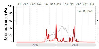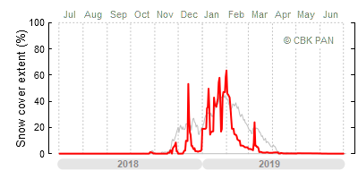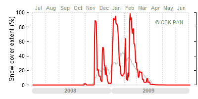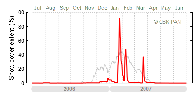 A mild winter is one where snow cover appears and quickly disappears, only occasionally covering more than 80-90 percent of the country. A good example of such a situation is the winter in Poland during the 2006/07 season, when snow appeared on a larger scale only at the turn of January and February.