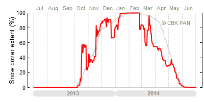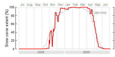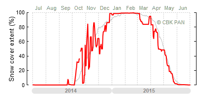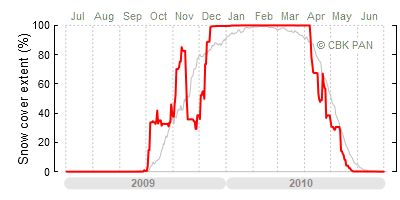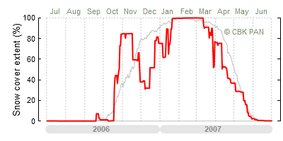 A mild winter is one where snow cover appears and quickly disappears, only occasionally covering more than 80-90 percent of the country. A good example of such a situation is the winter in Poland during the 2006/07 season, when snow appeared on a larger scale only at the turn of January and February.