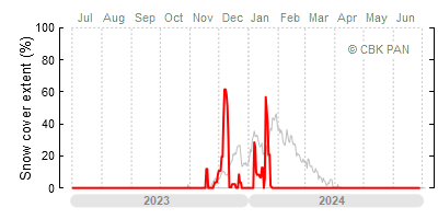 We would call a winter "harsh" if snow cover persisted for a long time and covered the largest possible area of the country. An example of such a situation in Poland is the winter of 2005/06, when snow covered almost the entire country from mid-December until the end of April. This significantly impacted the average for the entire year—statistically, on each day between July 1, 2005, and June 30, 2006, snow cover extended over as much as one-third of Poland!
