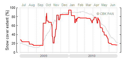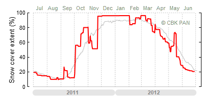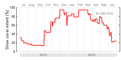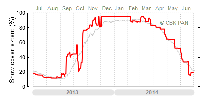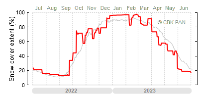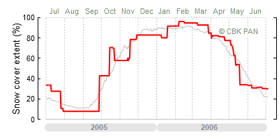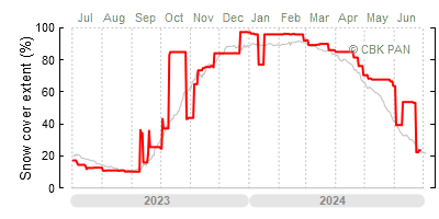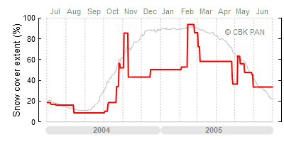 We would call a winter "harsh" if snow cover persisted for a long time and covered the largest possible area of the country. An example of such a situation in Poland is the winter of 2005/06, when snow covered almost the entire country from mid-December until the end of April. This significantly impacted the average for the entire year—statistically, on each day between July 1, 2005, and June 30, 2006, snow cover extended over as much as one-third of Poland!