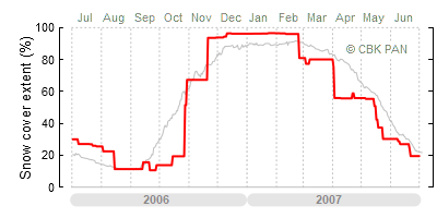 A mild winter is one where snow cover appears and quickly disappears, only occasionally covering more than 80-90 percent of the country. A good example of such a situation is the winter in Poland during the 2006/07 season, when snow appeared on a larger scale only at the turn of January and February.