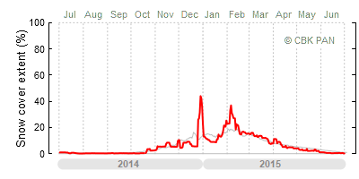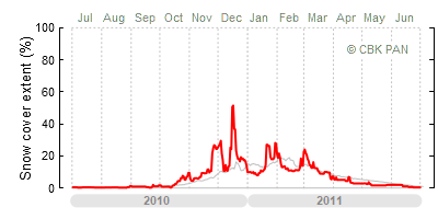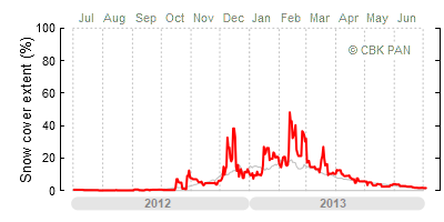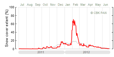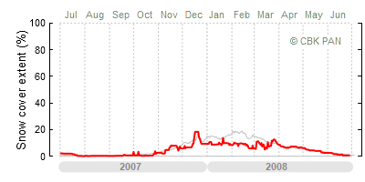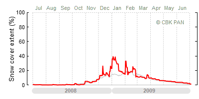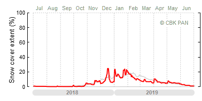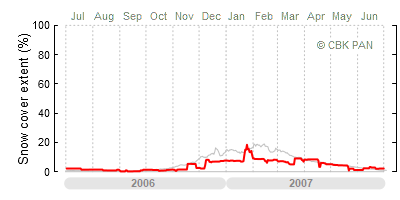 A mild winter is one where snow cover appears and quickly disappears, only occasionally covering more than 80-90 percent of the country. A good example of such a situation is the winter in Poland during the 2006/07 season, when snow appeared on a larger scale only at the turn of January and February.