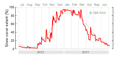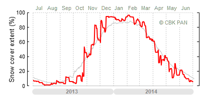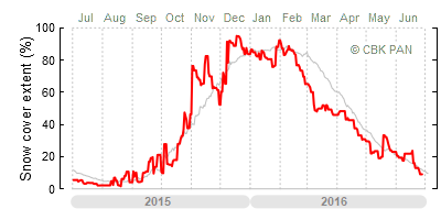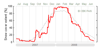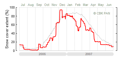 A mild winter is one where snow cover appears and quickly disappears, only occasionally covering more than 80-90 percent of the country. A good example of such a situation is the winter in Poland during the 2006/07 season, when snow appeared on a larger scale only at the turn of January and February.