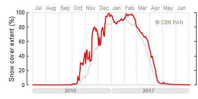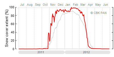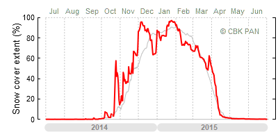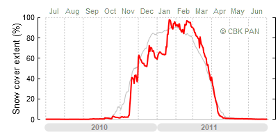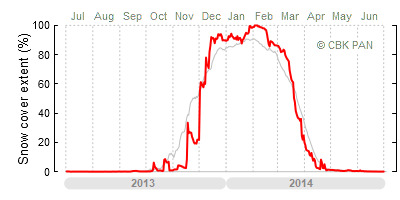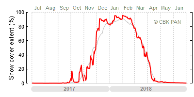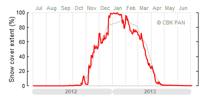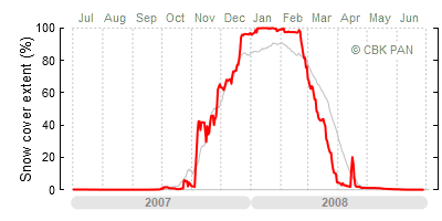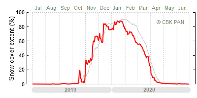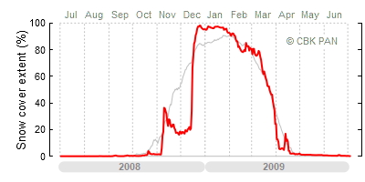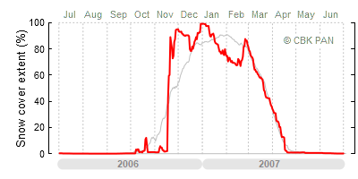 A mild winter is one where snow cover appears and quickly disappears, only occasionally covering more than 80-90 percent of the country. A good example of such a situation is the winter in Poland during the 2006/07 season, when snow appeared on a larger scale only at the turn of January and February.