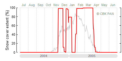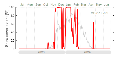 We would call a winter "harsh" if snow cover persisted for a long time and covered the largest possible area of the country. An example of such a situation in Poland is the winter of 2005/06, when snow covered almost the entire country from mid-December until the end of April. This significantly impacted the average for the entire year—statistically, on each day between July 1, 2005, and June 30, 2006, snow cover extended over as much as one-third of Poland!