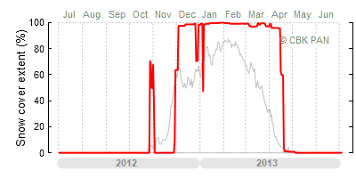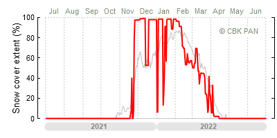 We would call a winter "harsh" if snow cover persisted for a long time and covered the largest possible area of the country. An example of such a situation in Poland is the winter of 2005/06, when snow covered almost the entire country from mid-December until the end of April. This significantly impacted the average for the entire year—statistically, on each day between July 1, 2005, and June 30, 2006, snow cover extended over as much as one-third of Poland!