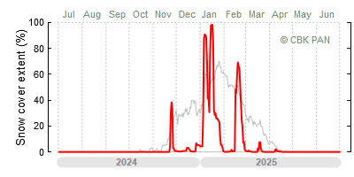 We would call a winter "harsh" if snow cover persisted for a long time and covered the largest possible area of the country. An example of such a situation in Poland is the winter of 2005/06, when snow covered almost the entire country from mid-December until the end of April. This significantly impacted the average for the entire year—statistically, on each day between July 1, 2005, and June 30, 2006, snow cover extended over as much as one-third of Poland!