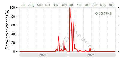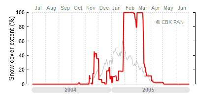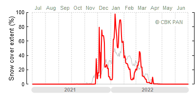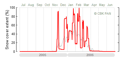 We would call a winter "harsh" if snow cover persisted for a long time and covered the largest possible area of the country. An example of such a situation in Poland is the winter of 2005/06, when snow covered almost the entire country from mid-December until the end of April. This significantly impacted the average for the entire year—statistically, on each day between July 1, 2005, and June 30, 2006, snow cover extended over as much as one-third of Poland!