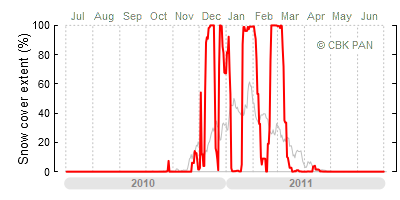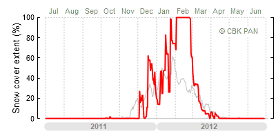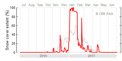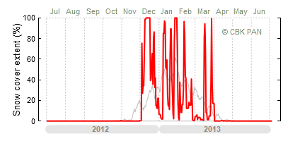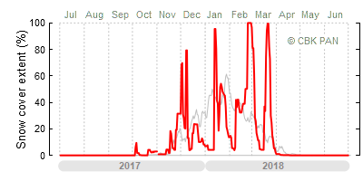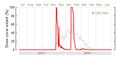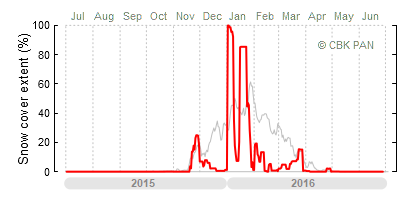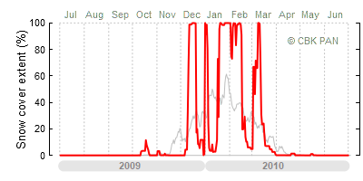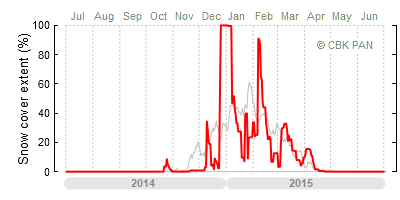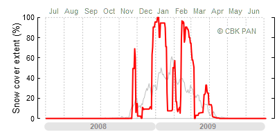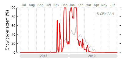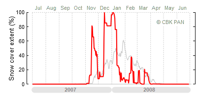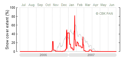A mild winter is one where snow cover appears and quickly disappears, only occasionally covering more than 80-90 percent of the country. A good example of such a situation is the winter in Poland during the 2006/07 season, when snow appeared on a larger scale only at the turn of January and February.