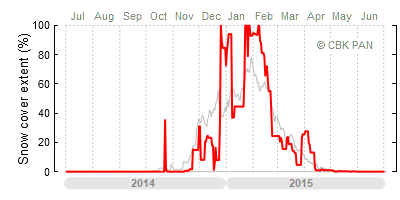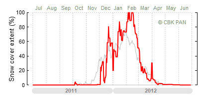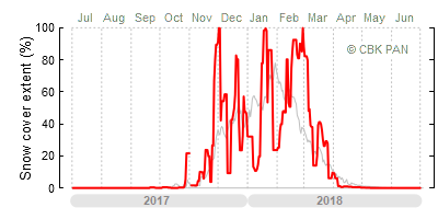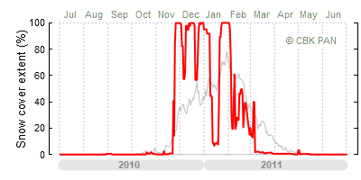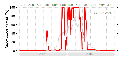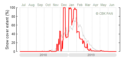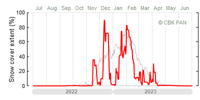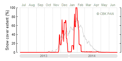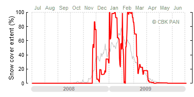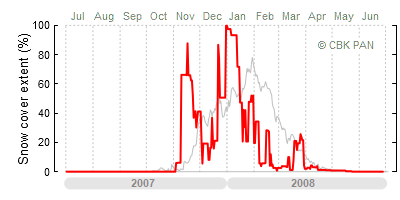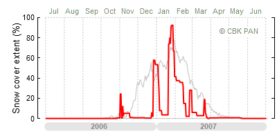 A mild winter is one where snow cover appears and quickly disappears, only occasionally covering more than 80-90 percent of the country. A good example of such a situation is the winter in Poland during the 2006/07 season, when snow appeared on a larger scale only at the turn of January and February.