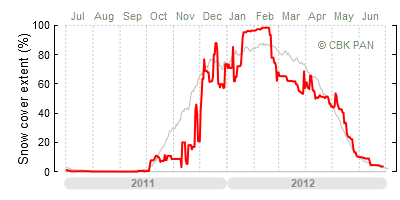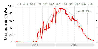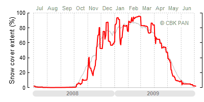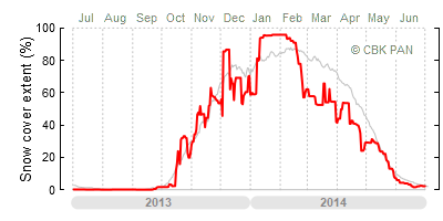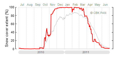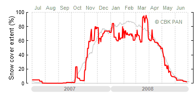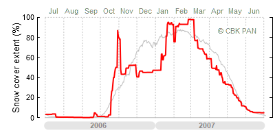 A mild winter is one where snow cover appears and quickly disappears, only occasionally covering more than 80-90 percent of the country. A good example of such a situation is the winter in Poland during the 2006/07 season, when snow appeared on a larger scale only at the turn of January and February.