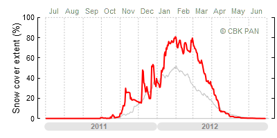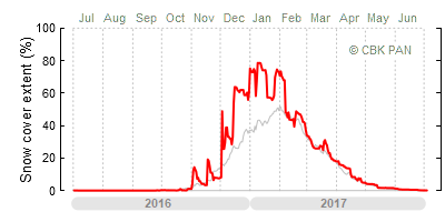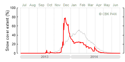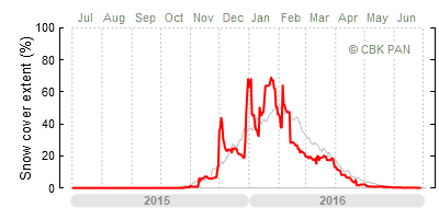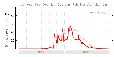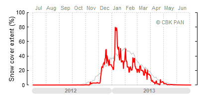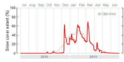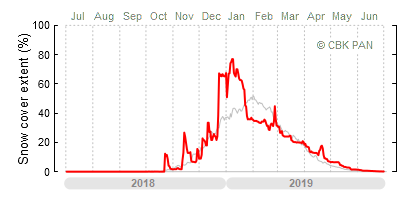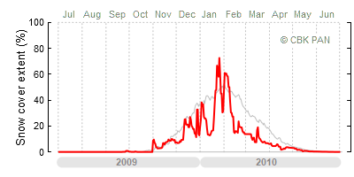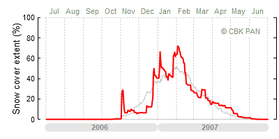 A mild winter is one where snow cover appears and quickly disappears, only occasionally covering more than 80-90 percent of the country. A good example of such a situation is the winter in Poland during the 2006/07 season, when snow appeared on a larger scale only at the turn of January and February.