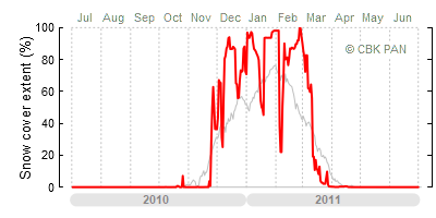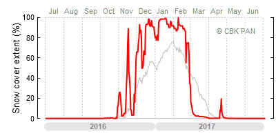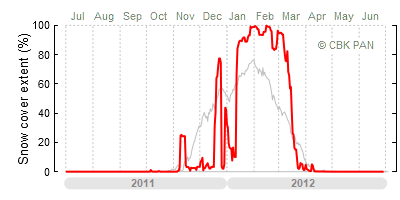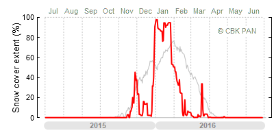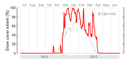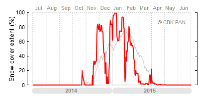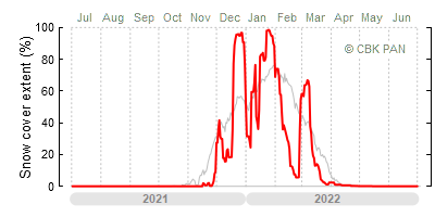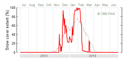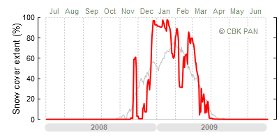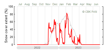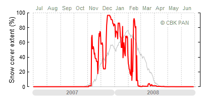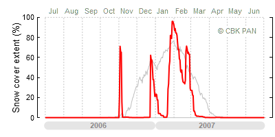 A mild winter is one where snow cover appears and quickly disappears, only occasionally covering more than 80-90 percent of the country. A good example of such a situation is the winter in Poland during the 2006/07 season, when snow appeared on a larger scale only at the turn of January and February.